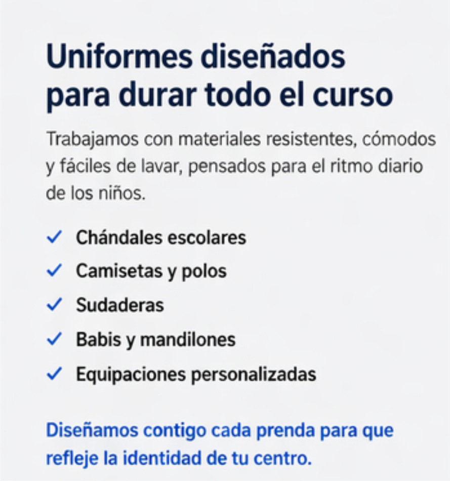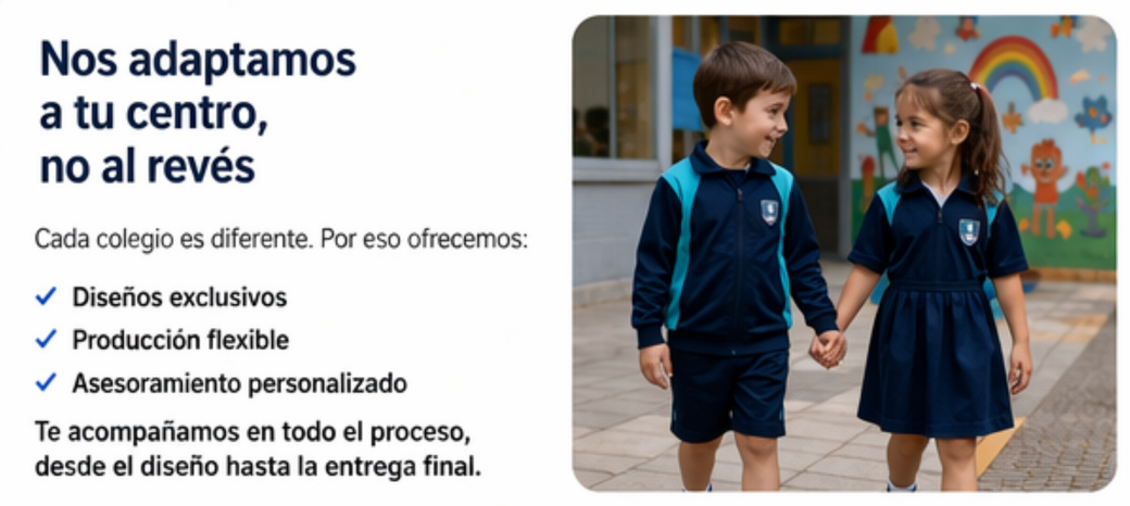 En Pequecoles diseñamos y fabricamos uniformes escolares, ropa de guardería y equipamiento deportivo adaptado a cada centro educativo.